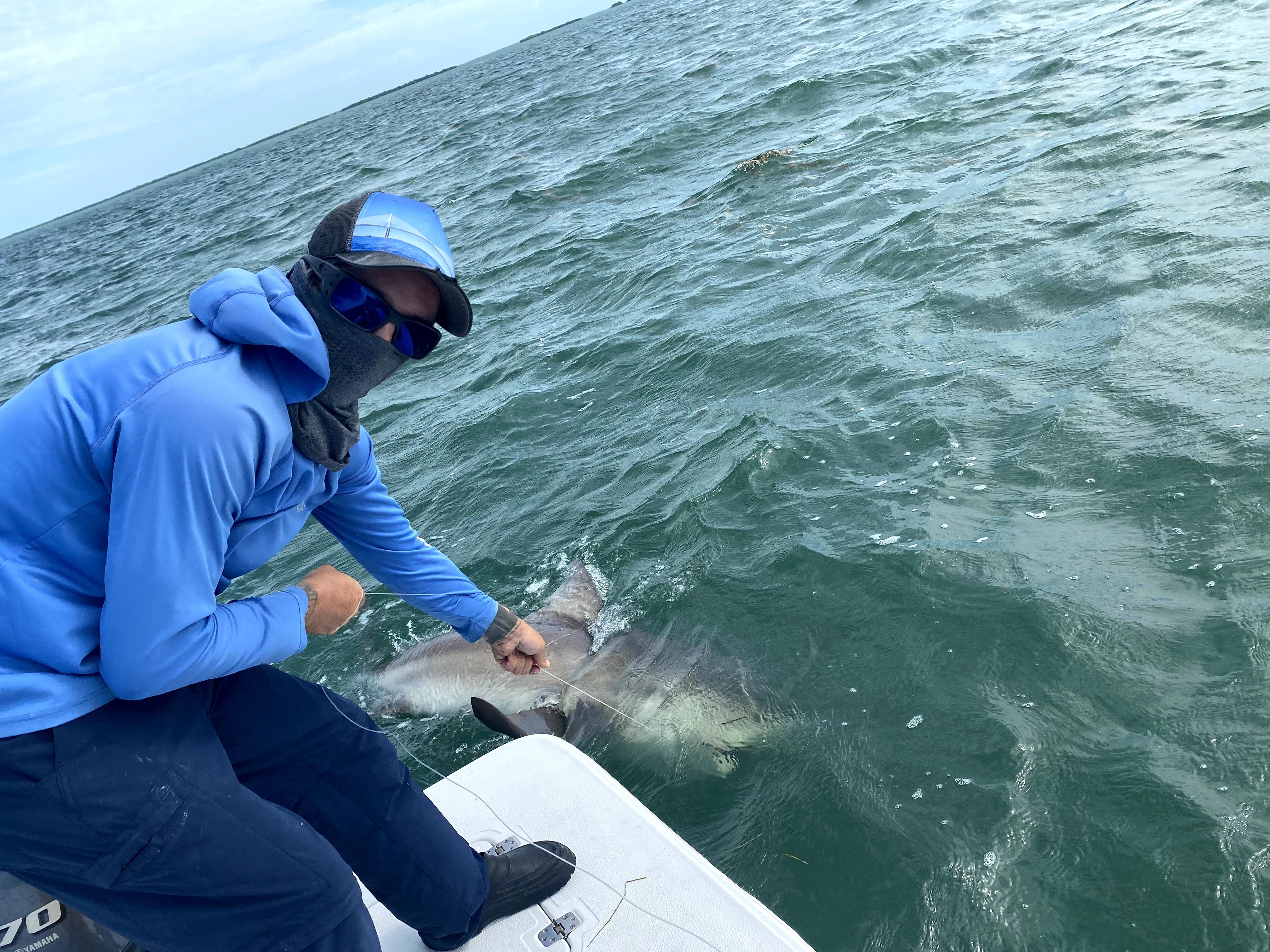 Lemon sharks bring a different vibe to the party - these golden-colored predators are known for their intelligence and curious nature. Running anywhere from 30 to 80 pounds in our waters, lemons are incredibly strong and persistent fighters. They prefer shallow, sandy areas and are most active during dawn and dusk periods. What guests love about lemon sharks is their personality - they're curious enough to investigate the boat and calm enough to get some great photos before release. Their distinctive color makes them instantly recognizable, and their prehistoric appearance never fails to impress.